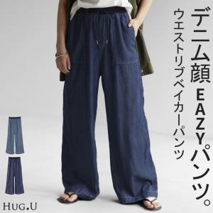パンツ デニム 風 イージー ワイド レディース ベイカー デニムパンツ ワイドパンツ バギーパンツ ジーンズ ジーパン
