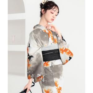 浴衣 レディース浴衣2点セット 3L/4L(綿浴衣+しわ兵児帯)大きいサイズ 変わり紅梅生地 綿100% KIMONOMACHIオリジナル レディース