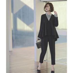 ルイルエブティック RUIRUE BOUTIQUE ノーカラーフレアペプラムパンツスーツ2点セット (ブラック)
