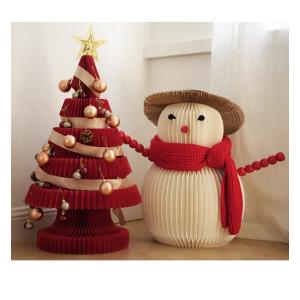 CAGUUU 4タイプアートクリスマスツリー L13*W13*H20cm レッド&グリーン 高品質紙製オーナメントツリー カスタマイズ可能な飾り付き