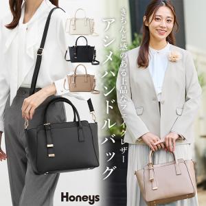ハンドバッグ バッグ 鞄 オフィス きれいめ アシメハンドル 合皮 フェイクレザー シ Honeys ハニーズ アシメハンドルバッグ