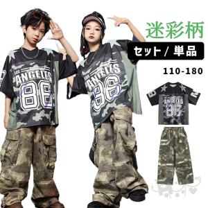 ダンス衣装 ヒップホップ k-pop衣装 ユニセックス 迷彩 ユニフォーム 半袖Tシャツ ナンバーロゴ 半袖 ロングパンツ セットアップ 派手 K-POP 韓国 ステージ衣