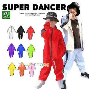 ウィンドブレーカー 上下 ヒップホップ ダンス衣装 キッズ セットアップ 派手 ジャージ 上下 男の子 ガールズ ジャケット ズボン 白 茶色 黒 K-POP 韓国