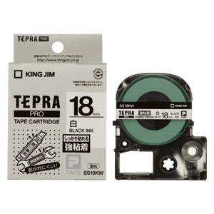 KING JIM テプラ PROテープカートリッジ 強粘着ラベル 18mm 白(黒文字)(SS18KW)