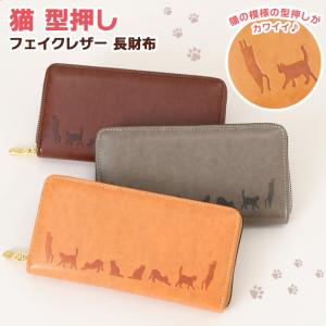 長財布 レディース 大容量 軽量 財布 ロングウォレット ネコ ねこ ラウンドファスナー 仕切り 小銭入れ 札入れ カード入れ フェイクレザー