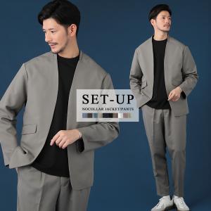 セットアップ メンズ 冬 上下セット ノーカラージャケット テーパードパンツ スラックス ポリトロ ボタンレス