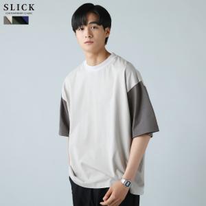【セットアップ対応】 カットソー Tシャツ メンズ 夏 ゴルフ 接触冷感 速乾 ナイロン ハイネック 半袖 ストレッチ 切り替え ラグジュ 45618