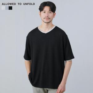 Tシャツ カットソー フェイクレイヤード メンズ 半袖 5分袖 重ね着 Vネック ゆったり サマーニット M L