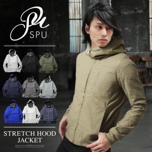 SPU スプ フードジャケット ジャケット メンズ 麻 綿麻 ストレッチ スタンドネック