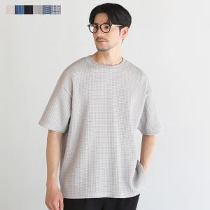 Tシャツ メンズ カットソー 春 春服 夏 夏服 ポリコットン 立体 ビッグワッフル ニット クルーネック 半袖 アイボリー M L LL
