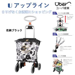 ショッピングカート おしゃれ 4輪 軽量 アップライン 花柄ブラック 保温・保冷仕様バッグ 高さ角度調整 プレゼント 母の日 敬老の日 UL-0218 ユーバ産業