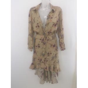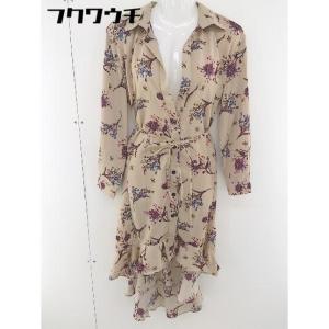 ◇ fifth フィフス 花柄 長袖 ロング シャツ ワンピース サイズM ベージュ系 マルチ レディース