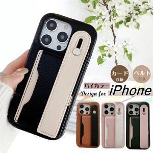 ベルト付き iPhoneケース バイカラー iPhone ケース なんでも対応 iPhone 15 14 Plus 13 12 icカード収納 スタンド レザー 耐衝撃 頑丈 大人女子 人気 おしゃれ