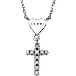 ペンダント レディース グッチ トップ幅0.7cm ダブルトップ ハート・十字架形 ダイヤモンド0.06ct 18金ホワイトゴールド GUCCI 3112272794J85409066
