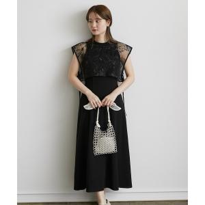 ドレス アシメレーススカート切替ウエストタックワンピースドレス「大きいサイズ」