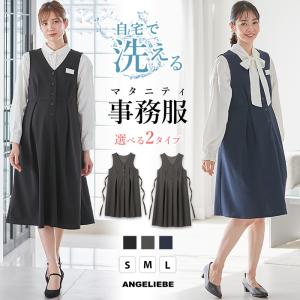 マタニティ ジャンスカ 事務服 仕事服 ワンピース ジャンパースカート 着丈が選べる 洗える 前開き 授乳 オフィス 黒 紺 ブラック エンジェリーベ