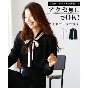 ブラウス オフィス ボウタイ ボータイ 卒園 入学 卒業 入園 パーティ 2色 バイカラー 仕事 きれいめ お仕事 レディース ファッション マニッシュ
