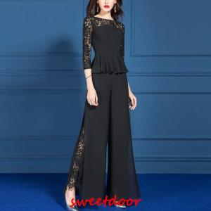ドレス セットアップ パンツ 結婚式 お呼ばれ パーティードレス パンツスタイル レース 黒 ネイビー 20代 30代 40代 FD-072417