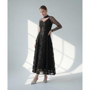 ドレス 「LEJA」シアーフラワーレースレイヤードワンピースドレス2点セット 美脚効果結婚式 パーティードレス 成人式 二次会 同窓会 お呼ばれ オケ