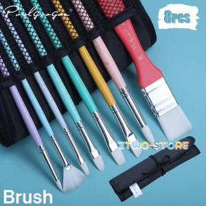 ブラシ 筆 8種類 セット ソフトケース付き カラフル 油絵 水彩画 絵 絵画 お絵かき