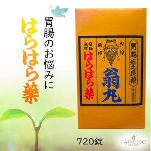 【第2類医薬品】 はらはら薬 翁丸 おきながん 720錠 食欲不振 腹部膨満感 消化不良 胃弱 食べ過ぎ 胸やけ 胃もたれ 胸つかえ 吐き気 二日酔