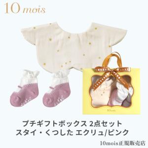 10mois プチギフトボックス スタイ・くつした エクリュ/ピンク 2点セット 日本製 ディモワ フィセル
