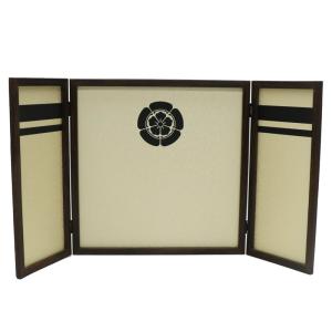 アウトレット品 屏風 屏風のみ 16号 三曲屏風 530062-16 別誂 家紋入り屏風 黒塗三方枠 織田家瓜 23a-ya-0331