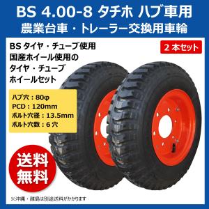 2本 BS 4.00-8 タチホ 6x4 ハブ車 トレーラー 台車 国産ホイール PCD120 ハブ穴80 400-8 4.00x8 400x8 ブリヂストン
