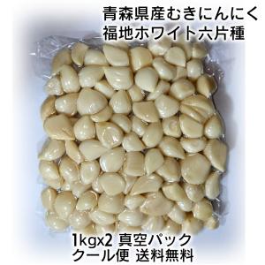 むきにんにく 2kg(1kg x 2パック) 国産 青森県産 福地ホワイト六片種 送料込み クール便 真空パック 簡単手間いらず むきニンニク