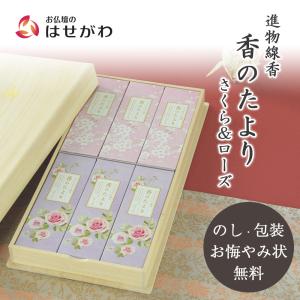 線香 贈答用 贈答 お線香 喪中 見舞 喪中はがき ギフト お供え 御供 お盆 お彼岸 煙少ない「進物線香 香のたより さくら ローズ 桐箱」お仏壇のはせがわ