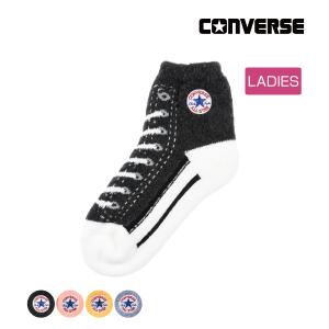 CONVERSE(コンバース) 靴下 クルー丈 柄 ロゴ 総パイル 裏起毛 あったか room socksあったか (2226-332)福助 fukuske ふくすけ