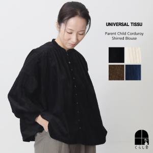 UNIVERSAL TISSU ユニバーサルティシュ 親子コーデュロイ シャーリングブラウス 長袖 ブラウス ゆったり ショート丈 おしゃれ あたたかい 秋冬