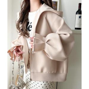 パーカー ふんわり、ゆったり、袖にキュン♪ダブルジップキャンディスリーブマシュマロダンボールパーカー レディース