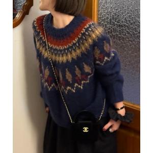 ニット セーター 「秋冬新作」ノルディック柄ゆったりニット レディース