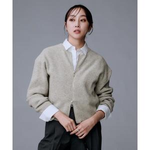 カーディガン 「ゆったりサイズ/着丈短め」ジップニットカーディガン レディース