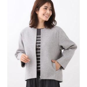ノーカラーコート コート 「ゆったりシルエット」ジャージメルトンコクーンジャケット レディース