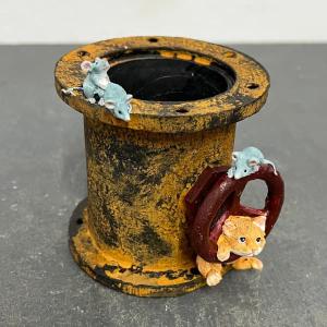 (わけあり特価)ピッコロフラワーポット(Flowerpot) ネコとねずみ(82756)(幅12・高さ12cm)