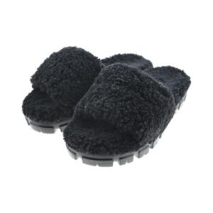 アグ オーストラリア UGG australia ファズ イヤー バックレス サンダル シープスキン フェイクファー 24cm US7 黒 ブラック