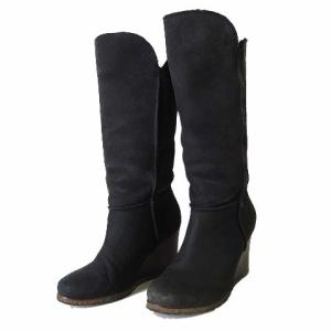アグ オーストラリア UGG australia ブーツ ムートンブーツ ロングブーツ 本革 ウエッジソール 24.0cm 黒 ブラック US 7 靴 シューズ