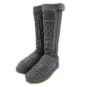 アグ オーストラリア UGG australia ミックスニットブーツ サイドジップ インヒール グレー系 グレージュ 24 レディース