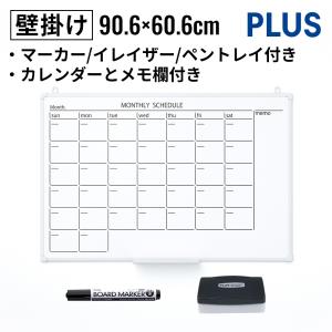 ホワイトボード 壁掛け 900×600 幅90.6 高さ60.6cm マンスリー 罫引きカレンダー マーカーセット付き PLUS