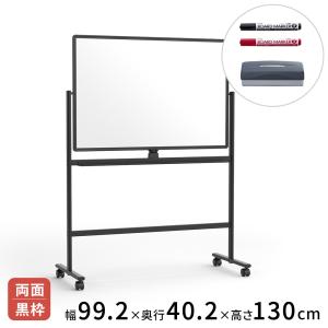 ホワイトボード 脚付き 高さ130cm 幅99.2cm 両面タイプ マーカーセット付き オフィス 塾 学校 座ったまま書きやすい