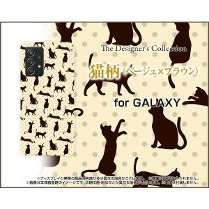 GALAXY A52 5G ギャラクシー スマホ ケース/カバー 猫柄(ベージュ×ブラウン) ネコ模様(ねこ) 可愛い(かわいい) 水玉(ドット)