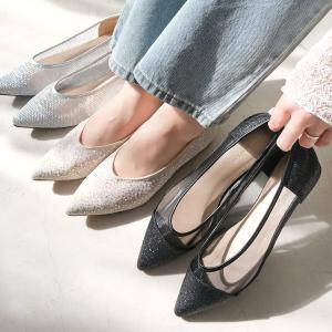 フラット ポインテッドトゥパンプス チュール メッシュ レディース 疲れない 歩きやすい amiamiアミアミ