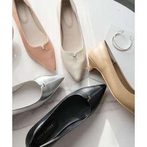 パンプス 3.5cmチャンキーヒールバレエパンプス