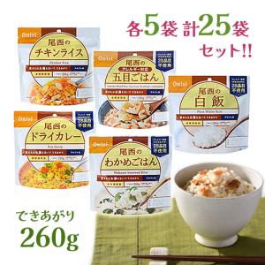 非常食 アルファ米 25食 (人気5種×5袋)セット 尾西食品 白飯 五目ごはん わかめごはん ドライカレー チキンライス