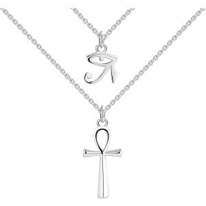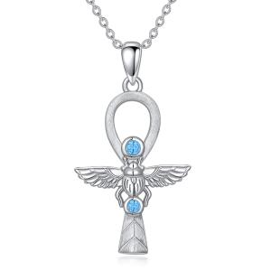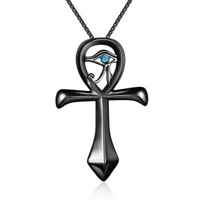 【並行輸入品】POPLYKE スターリングシルバー ホルスの目 信仰 邪眼 アンククロスペンダントネックレス 古代エジプトのお守り レディース