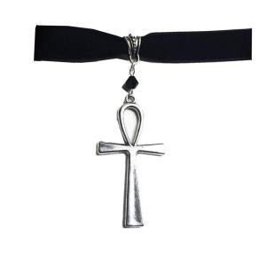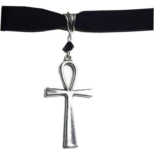 【並行輸入品】KBNSUIAN 古代エジプトアンククロスチョーカー レディース ガールズ ブラックリボン コプトアンカチャーム ネックレス 保護
