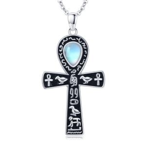 EUDORA スターリングシルバー アンククロスネックレス レディース メンズ エジプト 死神 アヌビスペンダント お守り エネルギーネックレス ヴィ