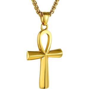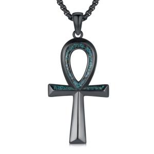 【並行輸入品】JKJF コプトアンククロスペンダントネックレス 古代エジプトの宗教的な十字架ペンダントネックレス クールなステンレススチールペンダント